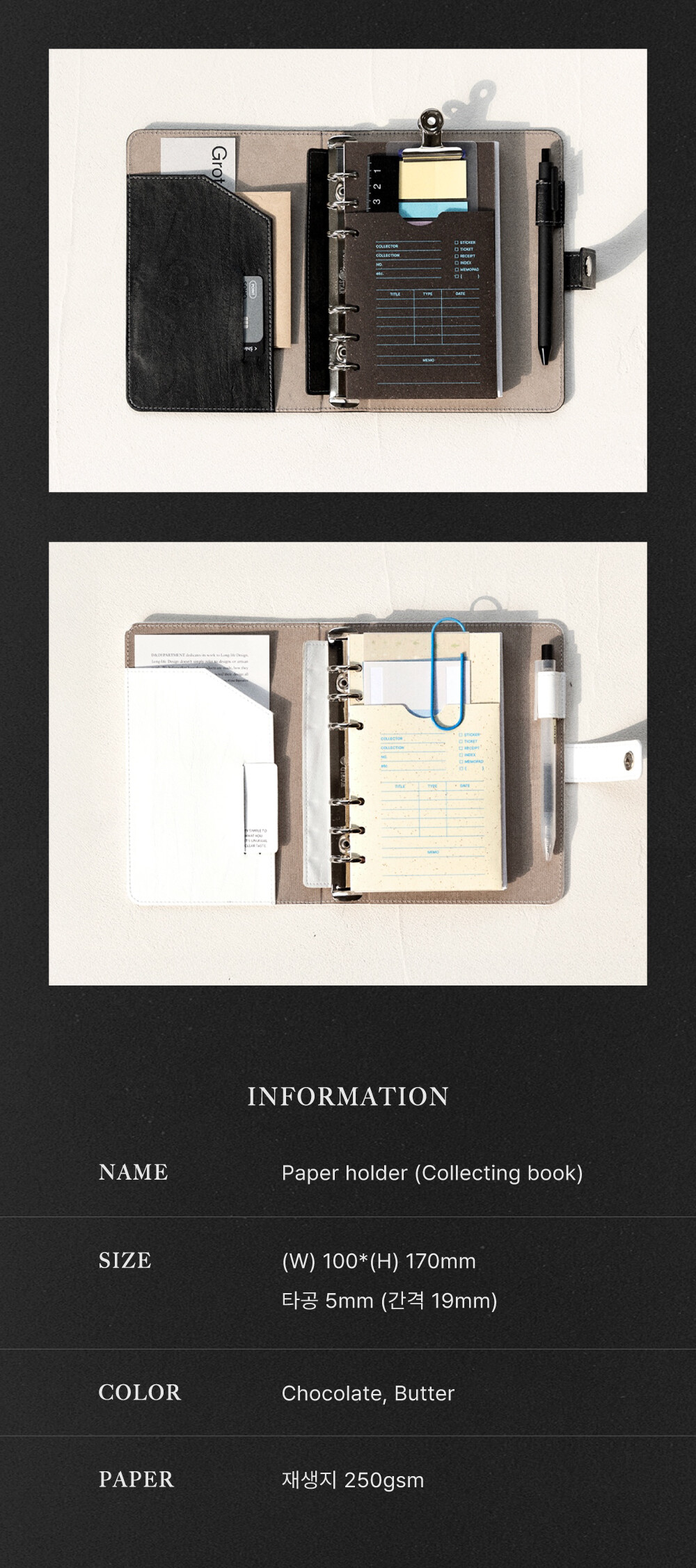 Paper holder (collecting book / 2 types)